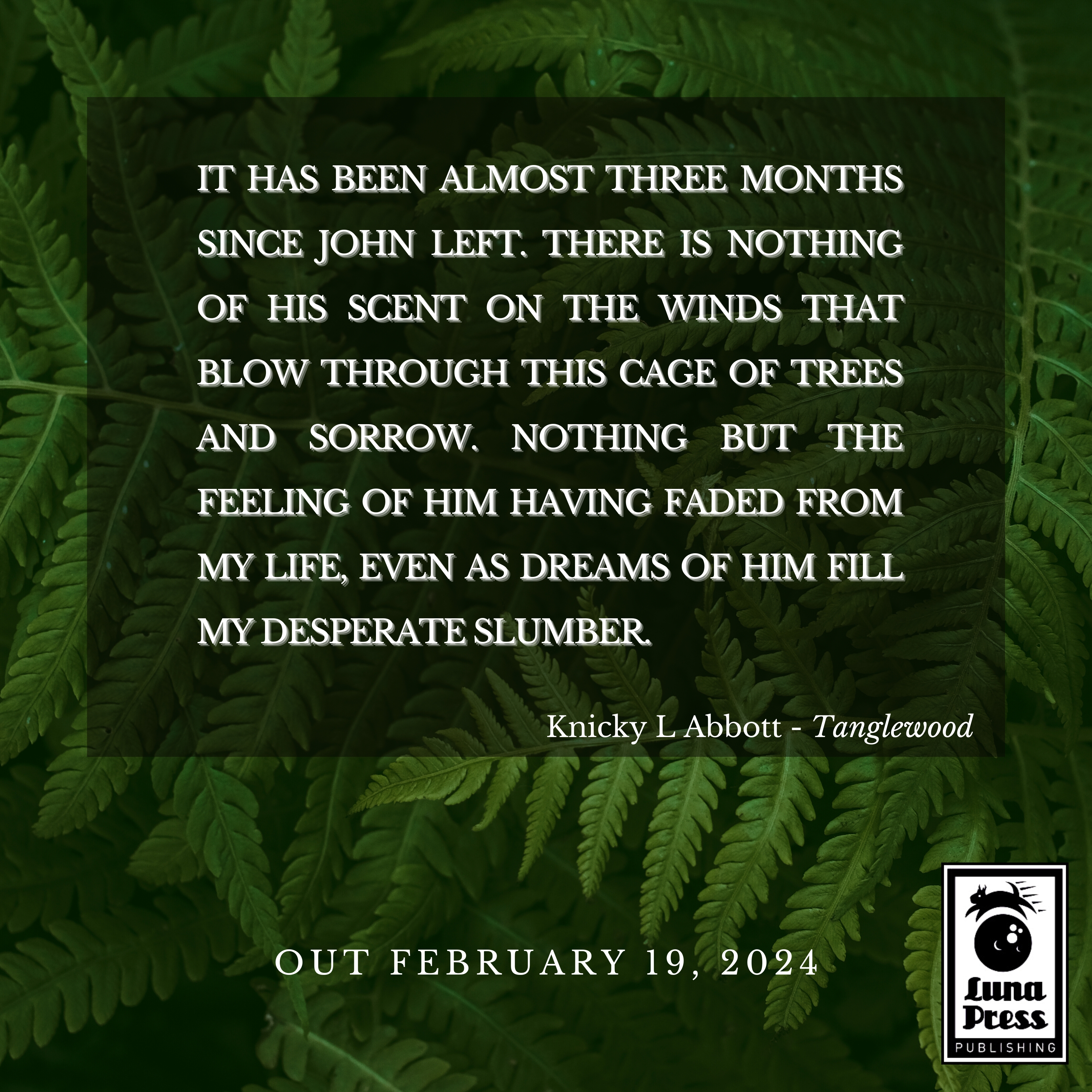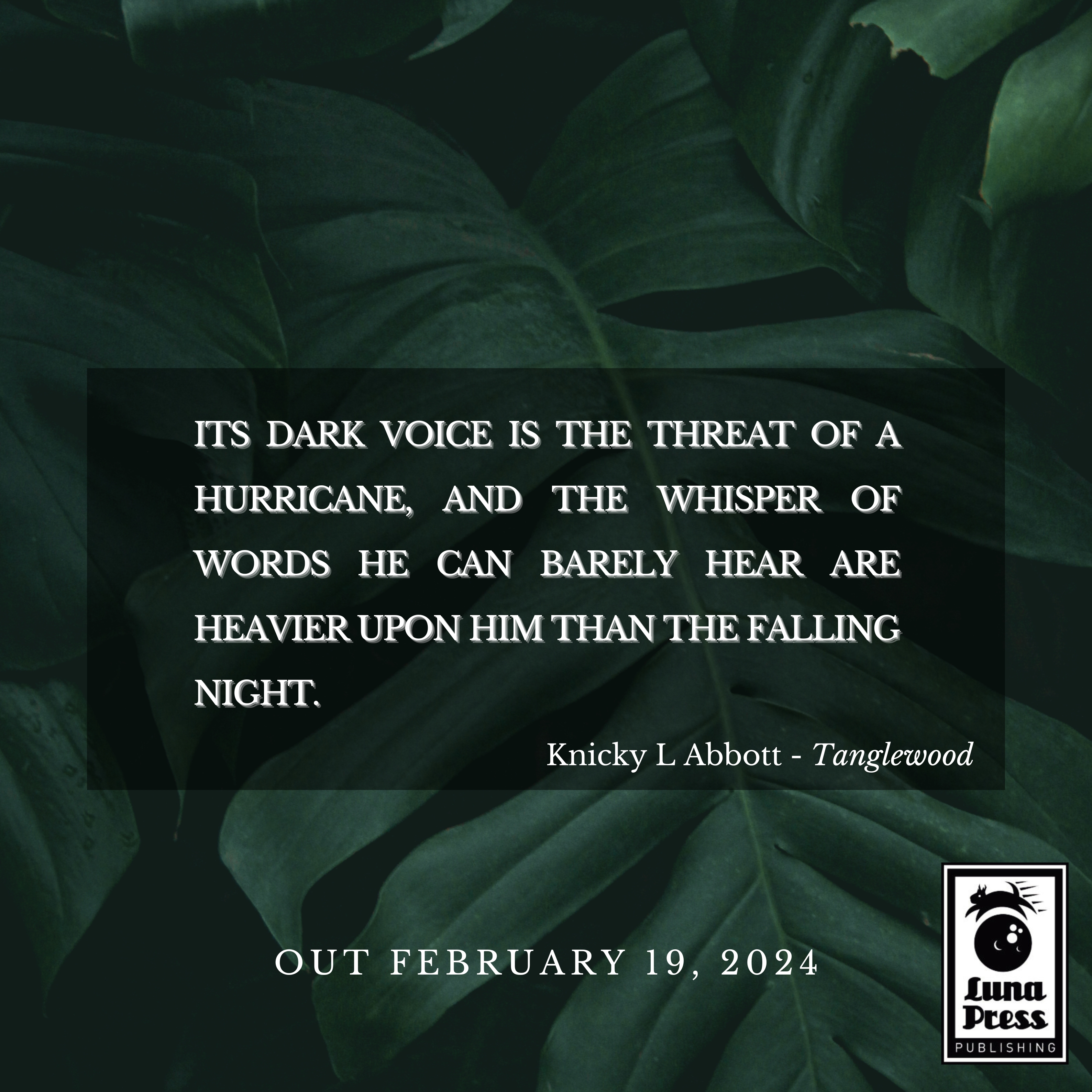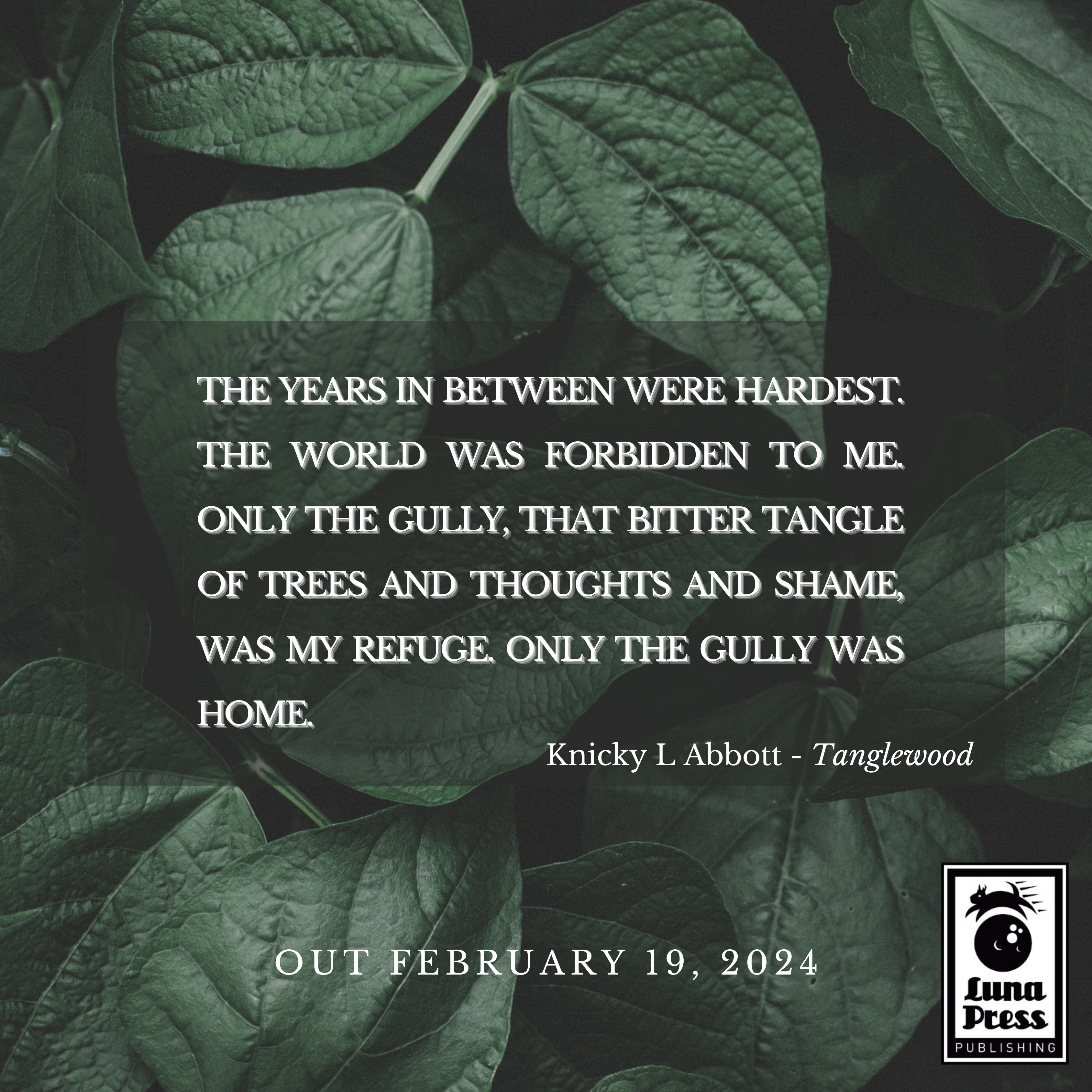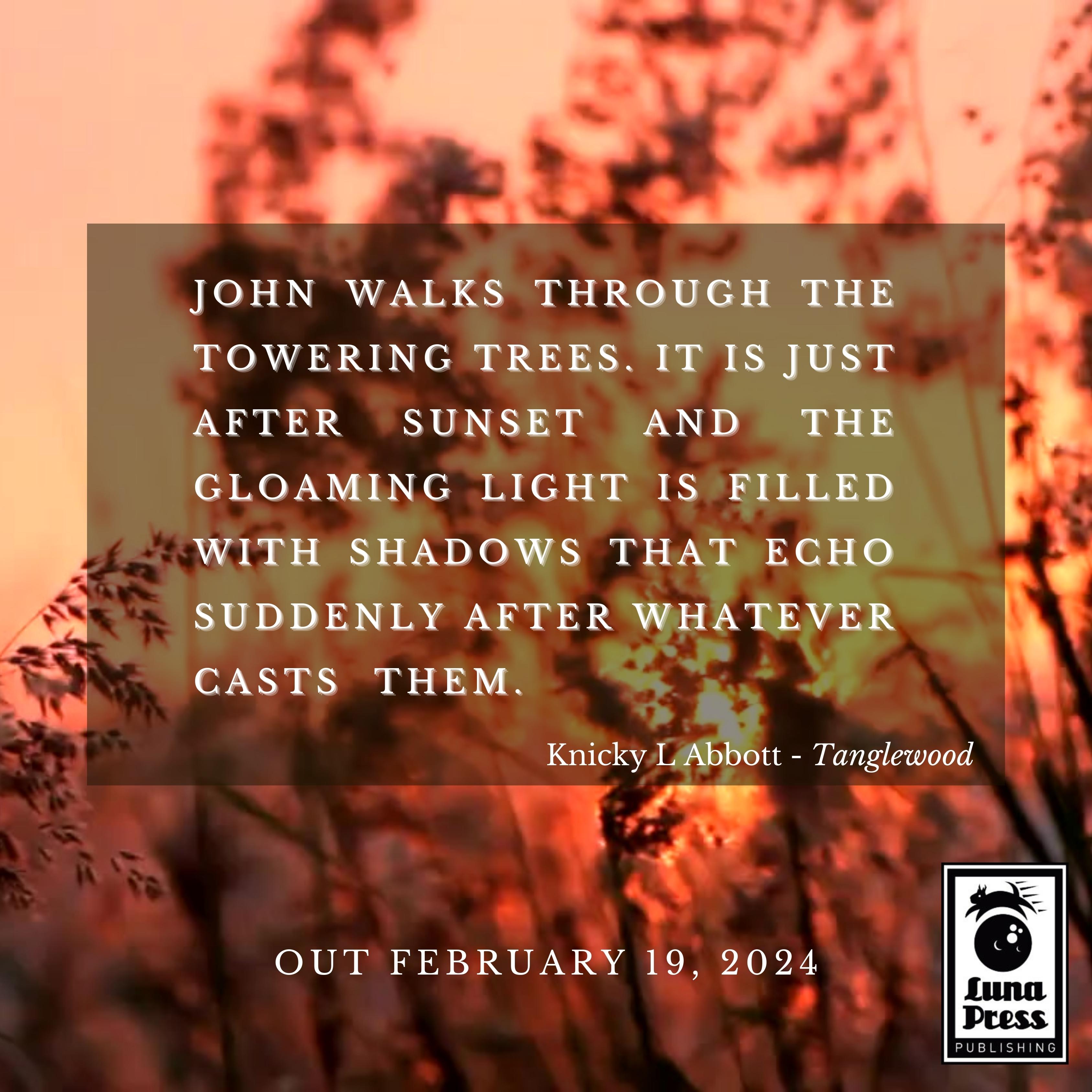 ‘A weaving of moonlight and spite, of love held and lost, of terrible sins unforgiven. Knicky L. Abbott’s Tanglewood is something new and rare. Riveting.’
